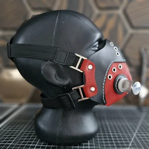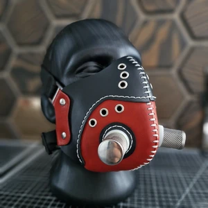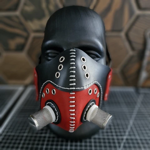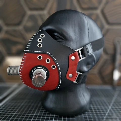 Маска из двух цветов кожи Возможны варианты с другим сочетанием цветов На взрослого человека Регулируется под размер головы с помощью рамок Украшена металлическими фильтрами