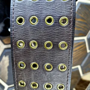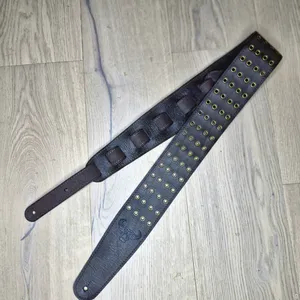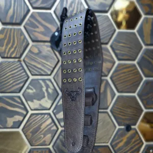 Гитарный ремень коричневый ремень с жёлтыми люверсами