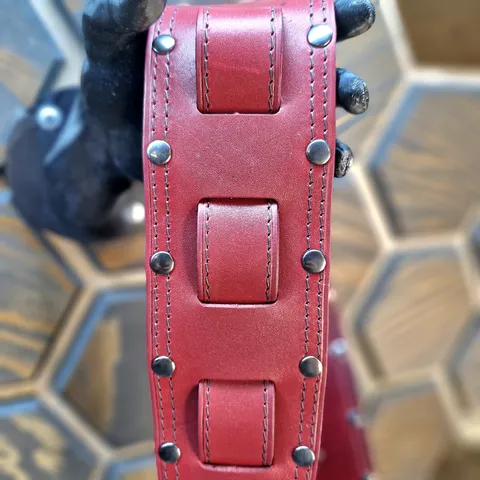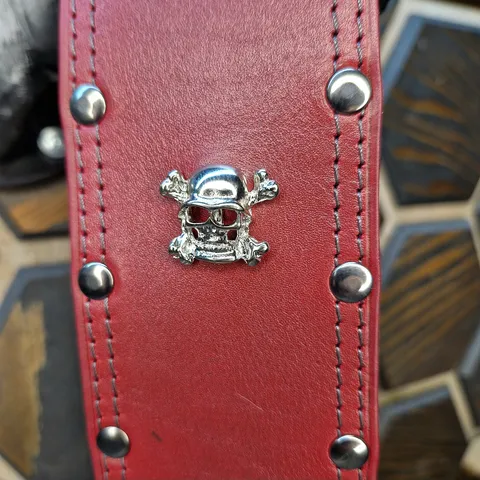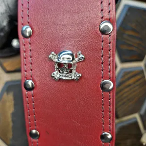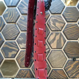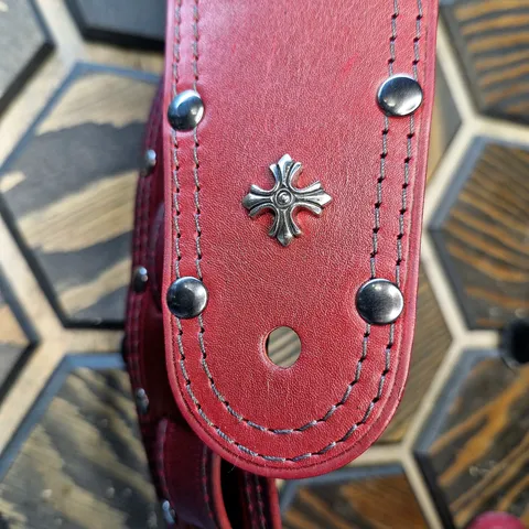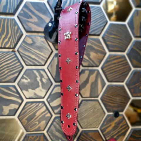 Гитарный ремень из натуральной красной кожи с крестами и клёпками