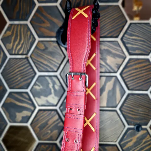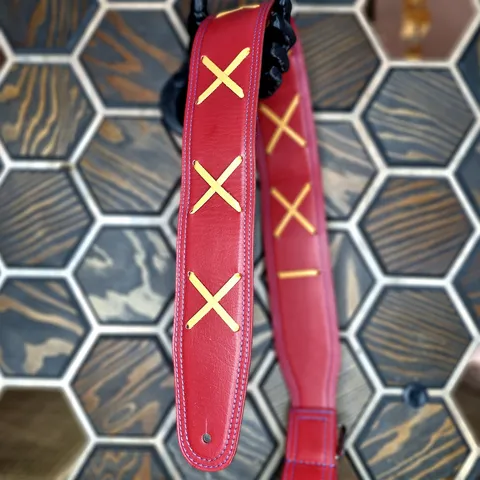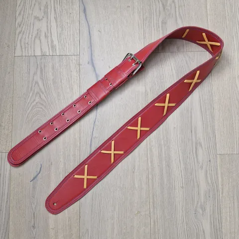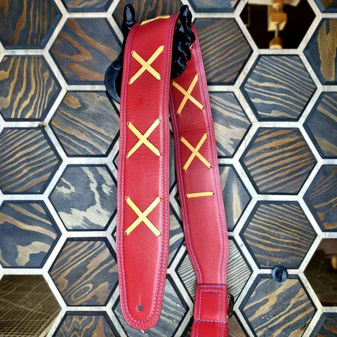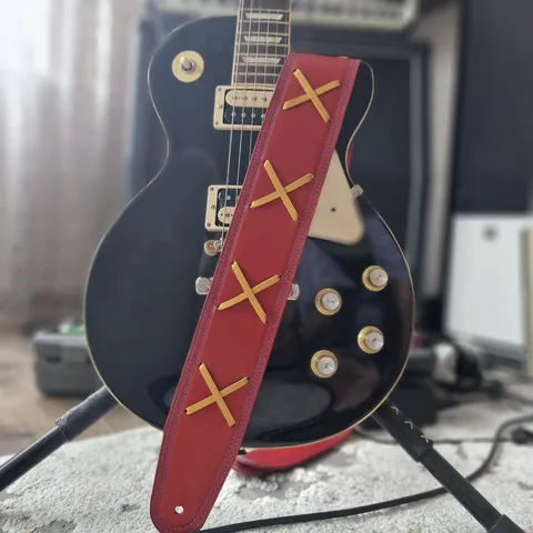 Гитарный ремень из двух слоёв натуральной кожи, внутри вставка из кожкартона для объёма.