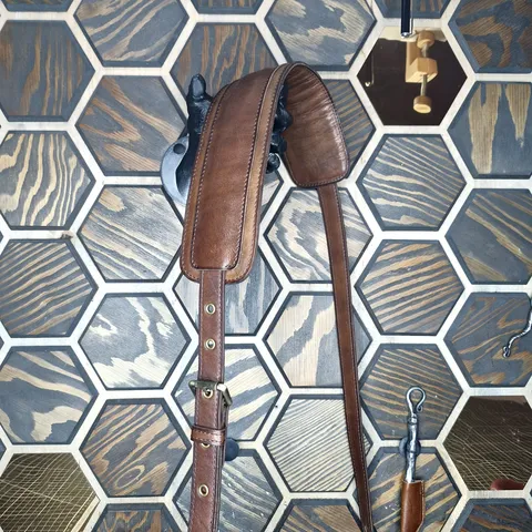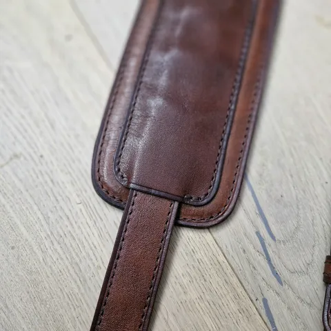 Гитарный ремень с наплечником из двух слоев кожи, регулировка на пряжке